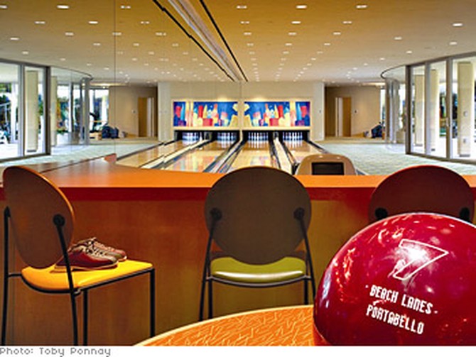 Along memory lane, you’ll find the bowling alley designed after the alley where the owner played as a child—complete with two regulation lanes, a bar and shoe rental. Nearby, there’s an Art Deco movie theater called the Rialto, which has its own concession stand, 12 custom couches and motorized velvet drapes.